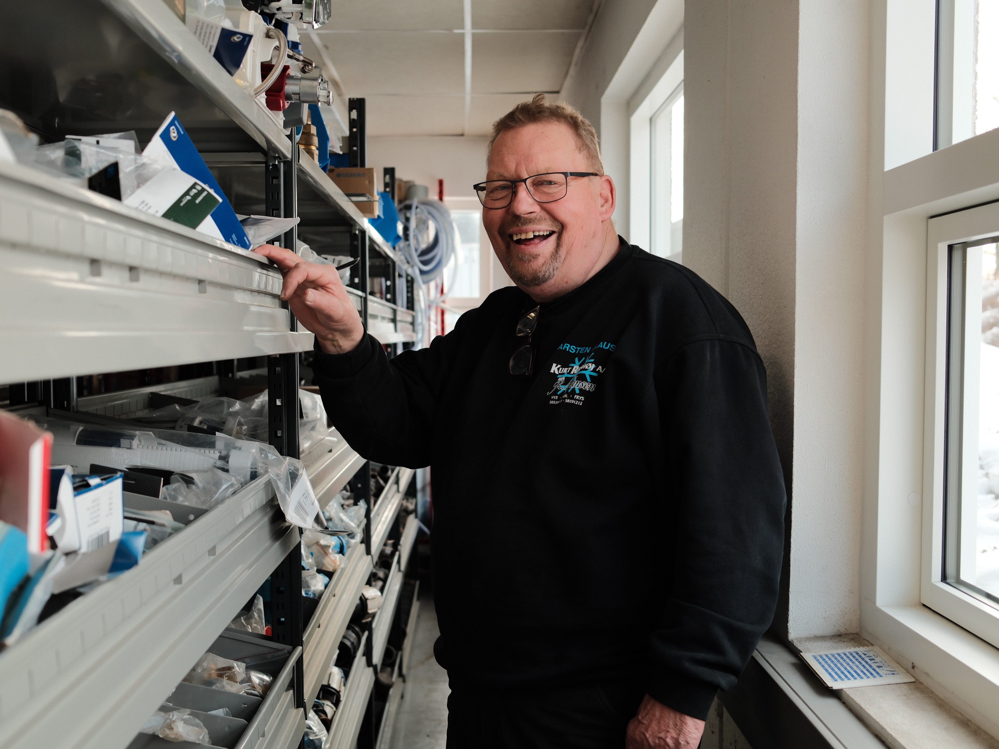 “Han kender materialerne, så han hjælper også med at finde de rigtige ting frem til montørerne.”